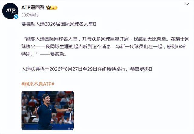 ATP巡回赛,ATP直播,ATP积分排名,ATP大师赛,2025网球赛程/聚焦ATP巡回赛2025全年度赛程、实时直播、积分排名、热门球员动态及预测分析。全面覆盖ATP1000、500、250赛事,是中文网球迷的不二之选。“能够入选国际网球名人堂,并与众多网球巨星并肩,我感到无比荣幸。在瑞士网球协会——我网球生涯的起点听到这个消息,与新一代球员们在一起,感觉非常特别。”——费德勒对于入选国际网球名人堂如是表态。