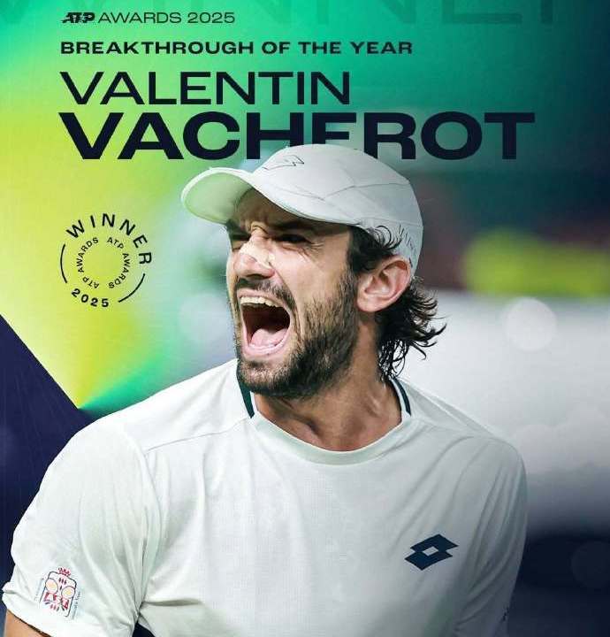 我们再来关注ATP年度奖项评选。北京时间昨晚,ATP官宣,在上海大师赛上勇夺冠军的摩纳哥球员瓦舍罗击败德雷珀、丰塞卡、门希克等竞争对手,荣获2025年度ATP突破球员大奖。在今年的上海滩,瓦舍罗从资格赛打起,一共连胜9场,以黑马之姿夺得职业生涯巡回赛男单首冠,也成为首位夺得大师赛单打冠军的摩纳哥人,惊艳男子网坛。